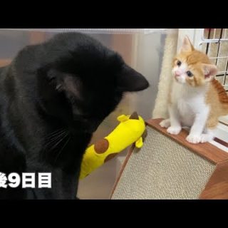 どうしても先住猫と挨拶したい子猫&こちょこちょパッにチャレンジ【農家兄妹 kitten wants to say hello to an older cat.